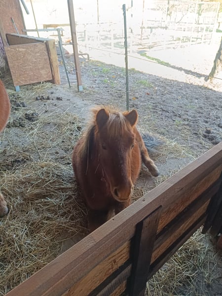 Vendemos nuestro potro Shetland de 1,5 años. Actualmente todavía es bastante travieso y necesita una mano firme. Se deja cepillar y limpiar las patas sin problemas. Actualmente, damos paseos con él cada dos días y la situación mejora constantemente. Sale sin problema solo del establo y también se queda solo. Las herraduras fueron cambiadas el 30 de noviembre. La desparasitación la recibió la semana pasada. Por ahora, todavía está con su madre, ya que nunca fue destetado. ¡Prioridad al carácter! Pero no lo regalamos. Como empieza a molestar a su madre, necesita encontrar un nuevo hogar lo antes posible. Por favor, solo contactar si hay interés real. No solo para guardar como favorito, sino también para venir a verlo. Es un perrito muy adorable.