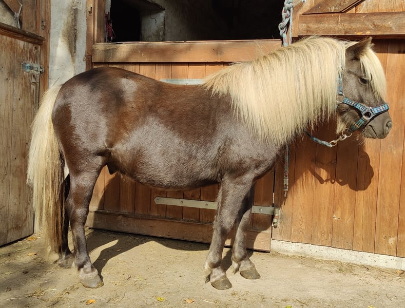 For sale is a charming Shetland Pony stallion, in a rare wind color, born in 2022. With a height of 98 cm, he is the perfect companion for both young and old. This young stallion shows great potential and has already been broken to harness for possible performance testing. The skills he has learned still need to be solidified, of course. In the autumn, you can take him to the licensing if you wish to breed with him. He has a friendly disposition and is curious. If you prefer a gelding, he can also be castrated at your own expense. We can gladly assist with this, especially if keeping a stallion is not possible in your own stable. In spring, he participated in a free-jumping tournament and achieved 2nd place in his first competition. There is still much potential ahead. He is healthy, regularly dewormed, and vaccinated. Additionally, he has a beautiful, well-groomed coat and is well-socialized. If you are interested in this fantastic Shetland Pony stallion in an absolutely special color, we look forward to your message! Viewings are possible at any time by arrangement.
