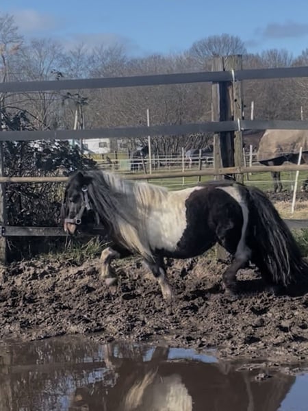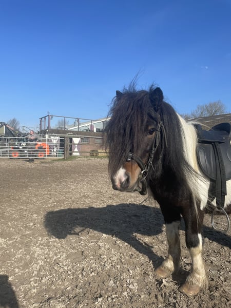 Knap shetland hengstje 4 jaar Geboren 8-5-2021 Bingo heeft zijn hengsten streekjes (overal zn tandjes in willen zetten en enthousiast worden als er een merrie voorbij komt) maar het is geen gemene pony. Hij is mensgericht en vind het leuk om aan de slag te gaan. Hij is nergens bang voor, zadel accepteerde hij direct al, nooit ingereden. Hij is slechtziend aan zijn rechteroog en heeft een slecht linker achter been ( contact me voor filmpjes), de kreupelheid zal waarschijnlijk verminderen met meer beweging. Hij moet ook naar de smid. Stel gerust vragen!