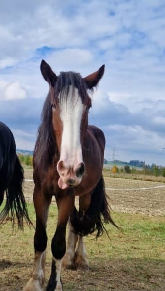 For sale: Shire Horse Gelding – the perfect leisure companion We are offering an impressive Shire Horse gelding, born in 2022. With a stately height of 15.1 hh, he makes a striking impression and impresses with his calm and friendly demeanor. This brown giant is ideally suited for recreational riding and convinces with his relaxed nature and pleasant temperament. If you are interested and would like more information, please feel free to contact me. Come and see this exceptional horse for yourself!