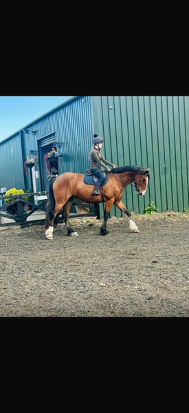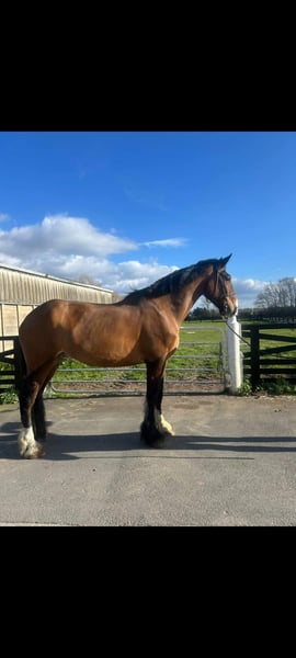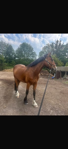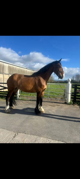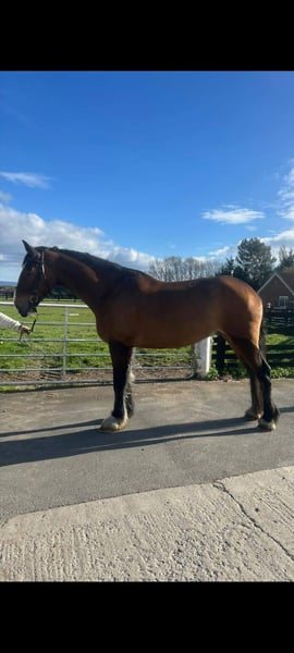 Looking for new home 18.1 hh 5 year old gelding who is very willing and excelling in every aspect of his education. Syid is shire from his mother's side (Rosemoore Ruby) and his farther is Irish draught (carrigfade dimono). Syid is working well on the flat in all three paces and has started hacking on the roads. He is a snaffle mouth, loads and has been clipped for the first time this year and was very well behaved. We have been doing pole work and bringing him on with his jumping which is showing promising. He Will only go the the best of home as he is much loved but has grown bigger than expected. Serious enquiries only, open to any trial or vetting. Contact me for any other information