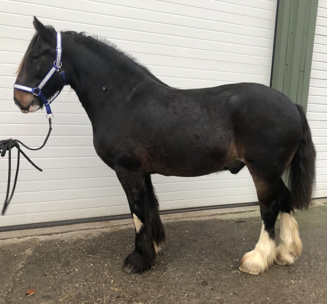 5-year-old Shire Horse gelding seeking a 5-star home. Scofield is a sensitive and attentive horse. His joy in movement and love for human contact make him an excellent leisure partner. Loading and farrier visits are no problem. He is familiar with ground work and accepts saddle and bridle easily. He has no health issues. Scofield was bred on the farm and is kept in an open stable. He gets along well with both geldings and mares. Color: dark bay Height: approximately 17.1 hh Interested? Please contact us by phone or WhatsApp: 01788355986