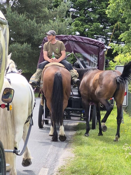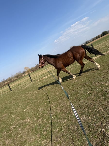 Major Sam, fast 7 Jähriger Shire Horse Mix Wallach mit einzigartiger Abstammung steht zum Verkauf bereit. Geritten, gefahren. Siehe Bilder. Er hat zur Zeit ein Stockmaß von 1,72cm Er wurde im Januar 2024 gelegt. Er hat natürlich Papiere. Er wurde von mir gezüchtet und wäschst artgerecht im Herdenverband auf. Er lebt zur Zeit mit seinen jüngeren Vollgeschwister zusammen, damit das soziale Miteinander immer aktiv gelebt wird. Er kennt die altersentsprechende Handhabung mit führen, anbinden, putzen, waschen, Hufschmied, Tierarzt und auch Anhängerfahrten. Er kennt den Straßenverkehr und offenes Gelände. Er arbeitet fleißig und möchte auch gefallen. Er ist schlau und aufnahmefähig. Koppelfest und war letztes Jahr 2025 beim Friedenstreck mit dabei. Ich wünsche mir ein Zuhause indem man seine Leistung wertschätzt. Er ist rangniedrig und komplett geimpft Tolles Freizeitpferd und Kutschpferd. Ist schon mit in Griechenland gewesen zum reiten und in Ungarn. Kann bei Bedarf auch gebracht werden. Beim Probereiten werden 60€ verlangt um Reittourismus vorzubeugen. Das wird beim Kauf natürlich verrechnet. Er hat ein gutes Go ist aber immer händelbar.