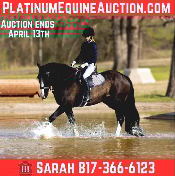 ONLINE AUCTION Place your bids at www.PlatinumEquineAuction.com Starting Bid $3500 Auction ends April 13th, 2025 Need a new saddle? Check out White Rock Saddles on our website or Facebook! Leroy is what every draft cross lovers dreams are made of. This 8yr old, 16hh, 1350lbs, Quarter Horse/Draftcross Gelding that has the puppy dog demeanor of a draft that everyone adores along with the rock solid conformation but has the ability and versatility to perform like a quarter horse half his size if needed and has the resume to prove it. Dad can use him to do ranch work, mom can ride him out on the trails or take him over fences, and the kids can play around him safely and dote on him to their hearts content. Leroy is truly a horse the whole family can and will enjoy. Leroy was bred and raised in Canada and then used to do ranch work in Canada, Montana, and here in Texas. He’s has a great work ethic and there’s no job too big for him. From doctoring in the pasture to dragging calves to the branding fire, Leroy has done it all and is ready for any job you need him to do. With his ranch work history especially in the mountains, it’s no surprise that Leroy is one of the most surefooted horses to grace our program. From mountainous terrain to the plains, he will safely get you to do your destination every time. Leroy crosses creeks and bridges with ease, navigates through thick brush safely, is careful and strategic about his foot placement when going up and down steep terrain, has no qualms when it comes to vehicle or pedestrian traffic, and if you’re on a State Trail way you’re sure to get compliments on him from passerby’s. In the arena, Leroy shines just as bright. Whether you’re riding him under english tack or western, Leroy is a smooth and fancy ride that attracts attention. He is one handed broke, side passes both directions, picks up the correct leads, can turn around slow and correct, and is tuned in to not only your seat, legs, and hands, but your voice as well. A simple sit on your pockets with a bump of the reins and an “easy” can have him going around at a pace slower than some pleasure horses and a bump with the magic “whoah” will have him stopping on a dime. Leroy is comfortable to ride in all gaits thanks to his natural cadence accentuated by his training. He has a lovely ground covering walk, a fantastic jog that can be bumped up to a comfortable working trot, as well as a lope that makes 90% of other horses his size 100% jealous. We truly don’t believe there is anything Leroy can’t do as he’s exceeded every expectation while in our program. He will carry a flag, has been schooled successfully up to 3’6” in both show jumping and cross country with a few prelim and intermediates thrown in, goes around lovely on the flat under english tack, happily keeps a toddler safe while riding double with a parent as well stepping up to the plate to be a huge blank canvas for said toddler’s finger painting. Leroy isn’t just a ranch horse, he’s a horse the whole family can enjoy doing so many different things with thanks to his mind and versatility. When it comes to Leroy’s daily care and handling, he is an absolute gentleman. Leroy has been easy to catch each time we walk out to get him and can typically be heard before seen with his greeting nicker. From grooming to tacking up, Leroy will remain like a patient statue (bonus points, you don’t need any specialty draft tack for him). He’ll let you take your time mounting and unmounting, and you can also safely use a mounting block if needed. Leroy is good to bathe and clip as well. The first time your farrier lays eyes on Leroy he might not be your biggest fan, but after working on Leroy, whether it’s just a trim or a full set, your farrier is sure to like him too. If you’re often trailering to different places, you can rest easy knowing Leroy will always load into your trailer and hauls without any fuss. Leroy has had no previous health or lameness issues, requires no special care or maintenance, is UTD on all routine care, and is ready to become the horse you’ve always wanted to own. We invite you to come meet this exceptional gelding at our place in Weatherford, TX. PPEs welcomed and we can help assist setting up hauling to wherever you call home. For any questions and to talk about if Leroy is the right fit for you, feel reach to out to H Spur Performance & Versatility Horses Sarah at 817-366-6123. To see his other 20+ videos and additional pictures, please visit his page on our website www.hspurhorses.com/leroy. ONLINE AUCTION Place your bids at www.PlatinumEquineAuction.com Starting Bid $3500 Auction ends April 13th, 2025 Need a new saddle? Check out White Rock Saddles on our website or Facebook!