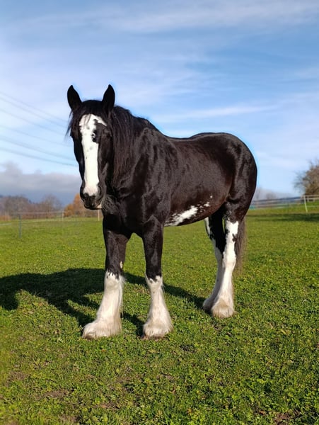 Loving Gem Easygoing, affectionate, and with a heart of gold: If all the conditions are right, we would be willing to part with our beloved Shire mare. Born June 29, 2015 Sire: Penrhos Brave Heart Dam: Senlim Heather May Height: 16.1 hh She loves to explore the terrain, crossing streams and navigating rocky paths. - In perfect health - Easy to load - Well-shod (four shoes) - No hoof issues - Absolutely child-friendly Children can also ride her in a group setting. - Responds excellently to voice commands She shows great motivation during groundwork, trail riding, and longeing. In the arena, despite solid basics, she sometimes lacks a bit of enthusiasm. For this reason, we are looking for the person who is the perfect match for her. Her excellent pedigree also makes her an interesting prospect for breeding.