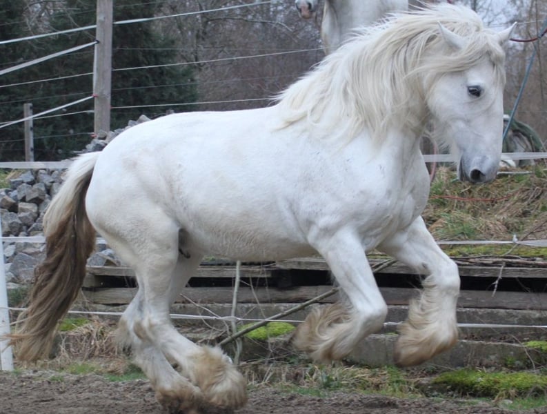 Tack för ditt intresse för vårt Shire Horse-sto Saffron. Saffron är född 2013 och har fullständiga papper från English Shire Horse Society. Saffron har alla de fina egenskaperna hos rasen Shire Horse. Karaktärsmässigt är hon ett människonära sto som är arbetsvillig och som man kan lita på. Saffron köptes av oss som avelssto. När hon anlände upptäckte vi dessvärre att hon hade fjällning, som var lätt att behandla men ändå ihållande. Eftersom det ännu inte är vetenskapligt bevisat om mastit eller anlag för mastit är ärftligt, har vi beslutat att inte använda henne för avel. Som uppfödare ser vi det som vårt ansvar att inte ta några risker - gentemot djuret. Istället rids Saffron nu av oss och visar sig vara en pålitlig, motiverad och härlig ridhäst. Hon kommer säkert också att bli en bra häst för utridning. Saffron är en del av en blandad flock och visar sig vara flockkompatibel och social. Hon är också bekant med boxuppstallning, även om hon känner sig mycket mer bekväm i en paddockbox eller ett öppet stall. Hon är social och lätt att hantera, men insisterar på att få beröm när hon gör något bra. På grund av sin fjällning säljs Saffron långt under sitt värde. Men med lämplig skötsel (detta är inte alltför komplicerat, men framtida ägare kommer naturligtvis att få detaljerade instruktioner) och regelbunden motion kan detta hållas under kontroll. Vi har beslutat att leta efter en plats för Saffron hos människor som är beredda att lägga ner några fler skötseltimmar för att få ett riktigt bra och tacksamt Shire Horse-sto i gengäld. Veterinär och släpvagnskörning är inga problem för Saffron. Just nu gillar hon inte hovslagaren särskilt mycket, men vi övar flitigt varje dag för att bygga upp hennes självförtroende och Saffron gör stora framsteg. Hon är naturligtvis regelbundet vaccinerad och avmaskad. Om du är intresserad är du välkommen att lära känna oss när som helst, vi nås bäst via Whatsapp för mer information. Våra djur ges bara till de bästa händerna och ett åldersanpassat hem, så det är viktigt för oss att ta tillräckligt med tid för intresserade parter. Det är också viktigt för oss att hästen har något att säga till om i beslutet, eftersom kemin också måste vara rätt för våra djur. Vi organiserar gärna en icke-bindande introduktion till Saffron som en "Shire Horse Day or Weekend" på vår gård så att vi kan lära känna varandra i lugn och ro och utan stress. Boende finns inom gångavstånd från vår gård. Våra andra skyddslingar är också alltid glada att välkomna besökare. Vi ser fram emot att få ett meddelande till Saffron.