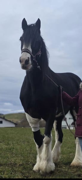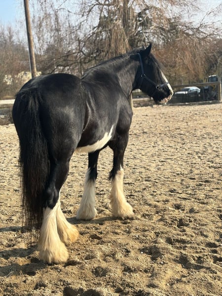 Beautiful Shire Horse Mare for Sale Up for sale is an impressive and elegant Shire Horse mare, born in 2012. This striking black mare captivates with her majestic appearance and friendly nature. She is ideally suited for leisure riding and impresses with her calm and balanced demeanor. The mare is healthy, regularly vaccinated, and well cared for. She is suitable for both experienced riders and beginners seeking a reliable and charming horse. Whether for scenic rides, relaxed walks, or simply companionship – this Shire Horse is a true asset. If you are interested and would like more information, I am happy to assist. Please contact me to arrange a viewing and meet this special horse in person!