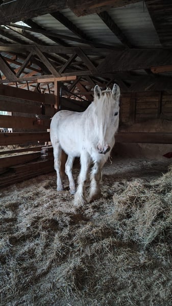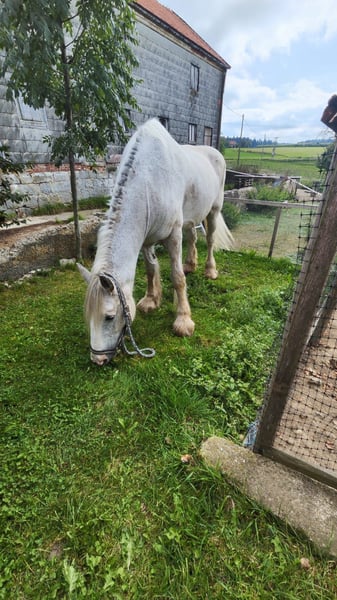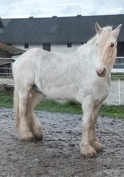 ✨ Elegant Shire Mare – ideal for leisure and enjoyment ✨ For sale is an impressive Shire mare, born in 2002. This beautiful grey mare impresses with her imposing height of 1.80 m, her presence, and her gentle, friendly nature. She is well-trained, calm in handling, and familiar with daily routines on the farm. Whether for relaxed rides, leisurely walks, or simply spending time together in the pasture – she is a reliable and loving companion for those who appreciate a calm, honest horse by their side. Due to her age, she is offered with a health guarantee and at a very favorable price of €900 instead of €5,900. It is important to us that she finds a good, responsible home where she will continue to be lovingly cared for and looked after. She is ideal for horse enthusiasts looking to give a large, experienced Shire horse a wonderful retirement – a horse that enriches everyday life with her calm presence and gentle nature.
