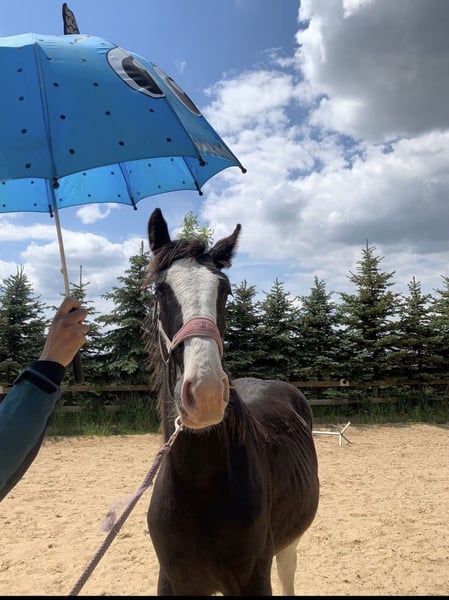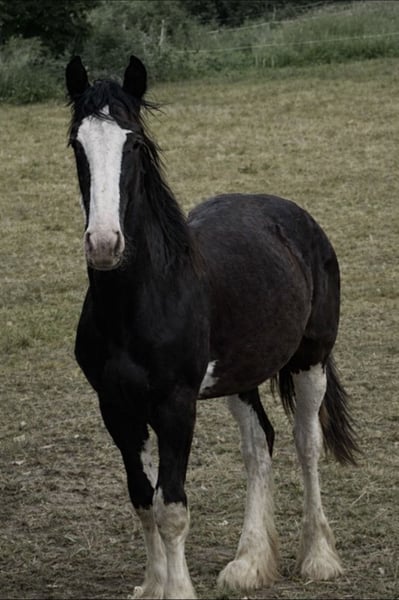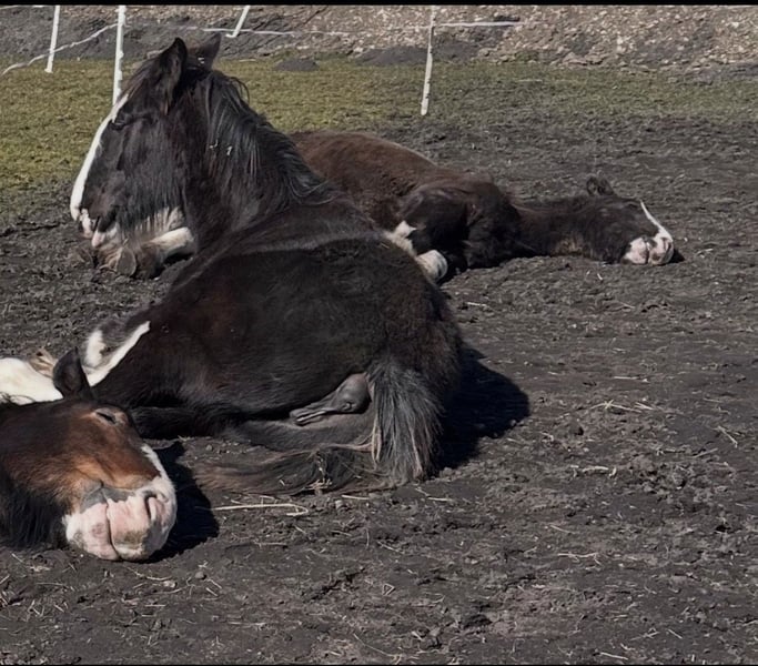 Shire Horse Stute, geb. 2024, aktuell ca. 1,65 m (im Wachstum) – ruhig, neugierig & absolut gelassen Schweren Herzens- Aufgrund veränderter Umstände suche ich für meine junge Shire Horse Stute ein passendes, langfristiges Zuhause. Kein Notverkauf. Sie ist eine sehr ruhige, ausgeglichene und neugierige Stute, die sich durch ihre Gelassenheit besonders hervorhebt. Neue Situationen werden von ihr aufmerksam und interessiert erkundet, ohne dabei hektisch oder panisch zu reagieren. Im Umgang zeigt sie sich freundlich, verschmust und menschenbezogen. Sie genießt Aufmerksamkeit, lässt sich sehr gerne putzen und sucht auch aktiv die Nähe zum Menschen. Für ihr Alter bringt sie bereits viel mit: – kennt Bodenarbeit und erste Gelassenheitsübungen – lässt sich problemlos führen und anbinden – Tierarzt und Hufschmied sind kein Problem – kennt Hunde, Kinder, Autos, verschiedene Umweltreize, Wasser, Plane, Schirm etc. Alleine spazieren gehen ist problemlos möglich. Sie wächst im Herdenverband auf, ist rangniedrig und sehr verträglich. Im Wesen ruhig und eher introvertiert: In unsicheren Situationen bleibt sie zunächst stehen und beobachtet. Mit ruhiger, klarer Führung gewinnt sie schnell Vertrauen und lässt sich sicher durch neue Situationen begleiten. Für ihr Alter sehr gelassen und grundsätzlich auch für Anfänger geeignet – das junge Alter sollte jedoch berücksichtigt werden. Freizeit-, Aufzucht- sowie späteres Reit- oder Fahrpferd. Rappe mit vier weißen Abzeichen an den Beinen und schönem Behang Aufgrund der Größe der Eltern (ca. 1,90 m) ist von entsprechendem Endmaß auszugehen. Transport ist gegen Aufpreis möglich. Zubehör kann ebenfalls gegen Aufpreis übernommen werden. Regelmäßig geimpft, entwurmt und gesundheitlich ohne Befund, Barhuf, Pass vorhanden. Gravel Pit Trudy - Rappe Vater: Gravel Pit Lord Ashby - Rappe Mutter: Gravel Pit Amper - Rappe