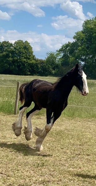 Shire Horse Jungstute, geb. 2024 – auffällige Zeichnung, neugierig & menschenbezogen Schweren Herzens- Aufgrund veränderter Umstände suche ich für diese besondere junge Shire Horse Stute ein passendes Zuhause. Kein Notverkauf. Sie ist eine sehr neugierige, aufgeschlossene und lernwillige Stute mit einem eher „extrovertierten“ Charakter. Im Vergleich zu ihrer Schwester zeigt sie sich aktiver, ist auch verspielt und interessiert an ihrer Umgebung, bleibt dabei aber stets händelbar und klar im Kopf. Im Umgang ist sie sehr verschmust, menschenbezogen und genießt Aufmerksamkeit. Putzen und Nähe zum Menschen mag sie besonders. Für ihr Alter bringt sie bereits viel mit: – kennt Bodenarbeit und erste Gelassenheitsübungen – lässt sich problemlos führen und anbinden – alleine stehen sowie spazieren gehen ist kein Problem – Tierarzt und Hufschmied sind problemlos (manchmal etwas engagiert) – kennt Hunde, Kinder, andere Tiere, Fahrzeuge, Wasser, Plane, Spray, Fliegenhaube, Decke etc. Sie wächst im Herdenverband auf, kennt Offenstall sowie Box mit Paddock und ist sozial verträglich. In neuen Situationen zeigt sie sich neugierig und aufmerksam, schaut sich Dinge genau an und verarbeitet sie gut. Farbe: Rappe mit vier weißen Abzeichen an den Beinen und auffälliger, typvoller Kopfzeichnung Beide Eltern sind großrahmig und liegen bei ca. 1,90 m Stockmaß. Aktuell ca. 1,65–1,70 m (im Wachstum). Für ihr Alter sehr gut händelbar – aufgrund des jungen Alters jedoch kein reines Anfängerpferd. Freizeit-, Aufzucht-, Reit- oder Fahrpferd. Barhuf, regelmäßig geimpft und entwurmt. Pass vorhanden. Aufgrund der Größe der Eltern (ca. 1,90 m) ist von entsprechendem Endmaß auszugehen. Rappe mit vier weißen Abzeichen an den Beinen und schönem Behang Transport ist gegen Aufpreis möglich. Zubehör kann ebenfalls gegen Aufpreis übernommen werden. Gravel Pit Jane - Rappe Vater: Gravel Pit Lord Ashby - Rappe Mutter: Brickell Edwina - Rappe
