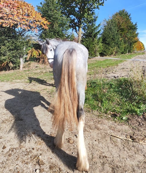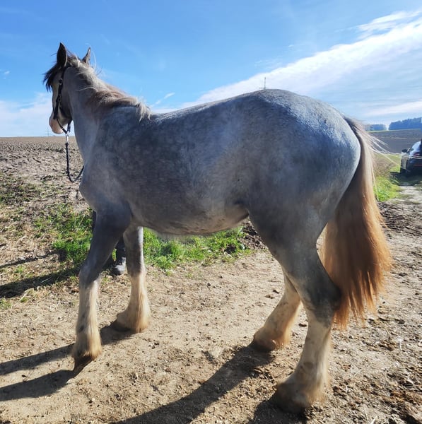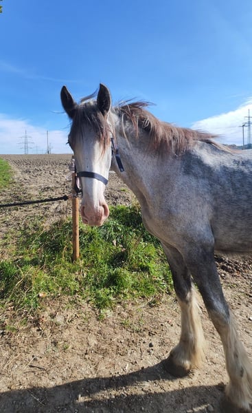 For sale: stunning Shire mare – a true highlight for horse enthusiasts! This impressive grey mare was born in 2024 and captivates with her majestic appearance. She combines strength and elegance and is ideally suited for leisure riding. Whether for walks or simply enjoying the company of a noble horse – this Shire mare will surely delight you. If interested or for further questions, please feel free to contact me. Viewing by appointment is possible.