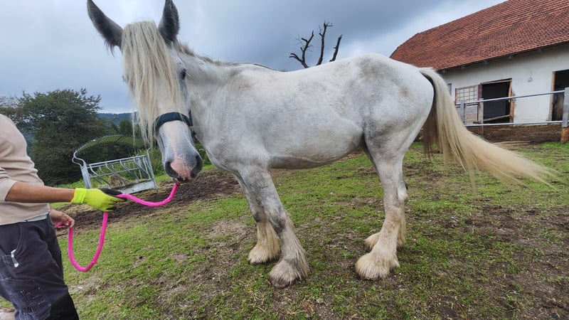 Zum Verkauf steht eine beeindruckende und elegante Shire Horse Stute, geboren im Jahr 2021. Diese charmante Schimmelstute vereint Kraft, Ruhe und Gelassenheit und ist perfekt für alle, die ein freundliches, zuverlässiges und treues Pferd für Freizeit und Erholung suchen. 🐴 Merkmale: Rasse: Shire Horse Geschlecht: Stute Geburtsjahr: 2021 Farbe: Schimmel Einsatzgebiet: Freizeit Preis: 5.900 € statt 8.800 € – für den richtigen Menschen 4.900 € Diese Stute überzeugt durch ihr sanftes Wesen, ihre ausgeglichene Art und ihre beeindruckende Erscheinung. Sie ist aufmerksam, menschenbezogen und bringt viel Ruhe in den Alltag – ideal für entspannte Ausritte, Spaziergänge oder einfach gemeinsame Zeit am Boden. Aufgrund eines ungewöhnlichen Bewegungsmusters im Schritt, das im Trab und Galopp nicht auftritt und ihr derzeit keine Einschränkungen bereitet, wird sie deutlich unter Wert abgegeben. Mit der richtigen Haltung und Pflege kann sie dennoch ein wunderbares Freizeitpferd und treue Begleiterin werden. Sie befindet sich in einem gepflegten Zustand, ist brav im Umgang, neugierig und menschenfreundlich. Tierarzt, Hufschmied und Hängerfahren kennt sie bereits und meistert alles mit Geduld und Vertrauen. Diese außergewöhnliche Stute ist das perfekte Pferd für jemanden, der nicht nur ein Reitpferd, sondern eine echte Partnerin sucht – ein Pferd, das mit Charakter, Gelassenheit und Ausstrahlung begeistert. 📍 Besichtigung und Probereiten sind nach Vereinbarung jederzeit möglich. Bei Interesse oder weiteren Fragen geben wir gerne nähere Informationen und Bilder.