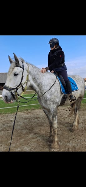 Dziękujemy za zainteresowanie naszą klaczą rasy Shire Horse Aurelia. Aurelia urodziła się w 2019 roku i ma obecnie około 1,80 metra wzrostu. Z pewnością stanie się wysoką klaczą, Shire zazwyczaj dorastają do wieku 9 lat. Ma pełne papiery od English Shire Horse Society. Ponadto Aurelia jest zarejestrowaną klaczą hodowlaną Shire Horse Society. Pochodzi z naszego programu hodowlanego i od początku dorastała z innymi źrebiętami, a później w mieszanym stadzie. Oboje rodzice charakteryzują się zrównoważonym i przyjaznym charakterem. Aurelia dorastała w stadzie i jest zaznajomiona zarówno z całodobowym pobytem na zewnątrz, jak i w boksie. Obecnie żyje w mieszanym stadzie wraz z końmi innych ras z codziennym, godzinnym wypasem, gdzie łatwo się integruje. Jest zorientowana na ludzi i ciekawska. Aurelia zachwyca przede wszystkim swoim pieszczotliwym charakterem. Uwielbia być głaskana godzinami. Niedawno zaczęliśmy ją trenować i jest zmotywowana i chętna do nauki. Wszystkie konie są przez nas delikatnie wprowadzane od 5 roku życia. Do tego wieku głównym celem jest podstawowe posłuszeństwo, praca naziemna i trening spokoju. Aurelia z pewnością stanie się wspaniałym koniem wierzchowym. Oczywiście ma wszystkie niezbędne szczepienia i jest regularnie odrobaczana i pokazywana kowalowi. Aurelia jest bezproblemowa zarówno u weterynarza, jak i u kowala. Nie ma też problemu z ciągnięciem jej na przyczepie. Jeśli jesteś zainteresowany, możesz ją poznać w dowolnym momencie, najlepiej skontaktować się z nami przez Whatsapp, aby uzyskać więcej informacji. Nasze zwierzęta trafiają tylko w najlepsze ręce i do domów odpowiednich dla ich wieku, dlatego ważne jest dla nas, aby poświęcić wystarczająco dużo czasu zainteresowanym stronom. Ważne jest dla nas również, aby koń miał wpływ na decyzję, ponieważ chemia musi być również odpowiednia dla naszych zwierząt. Chętnie zorganizujemy niezobowiązujące zapoznanie z Aurelią w ramach "Dnia lub Weekendu Konia Shire" na naszej farmie, abyśmy mogli poznać się w spokoju i bez stresu. Aurelia mieszka w pobliżu Bad Füssing. Chętnie zajmiemy się jazdą konną Aurelii. W tym czasie Aurelię można oczywiście odwiedzać i towarzyszyć jej w dowolnym momencie. Chętnie zorganizujemy również sesje z przyszłym właścicielem w dowolnym momencie, aby koń i jeździec mogli "rosnąć razem". Zakwaterowanie z doskonałym jedzeniem jest dostępne w odległości spaceru od naszej farmy. W bezpośrednim sąsiedztwie znajduje się również kilka pięknych uzdrowisk, więc krótkie wakacje w pobliżu nas są zdecydowanie warte zachodu. Nawet "nie-jeźdźcy" są tu bardzo mile widziani. Oferujemy również przejażdżki z przewodnikiem i wędrówki z naszymi łagodnymi gigantami w pięknym otoczeniu przyrody. Mniej doświadczeni jeźdźcy również mogą nam towarzyszyć, w takim przypadku koń jest prowadzony z ziemi. Dostępne są u nas również bony upominkowe, które były już miłą niespodzianką urodzinową. Więcej wrażeń na temat naszych koni można również znaleźć na naszym kanale Whatsapp. Jeśli jesteś zainteresowany, z przyjemnością prześlemy Ci link.
