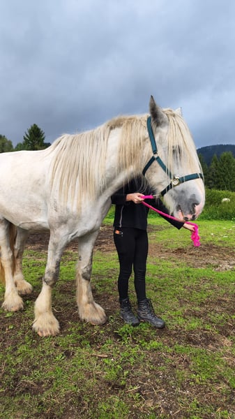 Zum Verkauf steht eine mächtige Shire Horse Stute, geboren im Jahr 2021. Diese Schimmelstute vereint Kraft, Dursetzung und Gelassenheit. Und wenn sie nicht will , dann will sie nicht !! Das geht natürlich mit ihrem Gewicht und ihrer Größe ganz leicht. Einsatzgebiet: Freizeit Preis: 5.900 € statt 8.800 € Diese Stute hat definitiv ihren eigenen Kopf. Und sie bestimmt, ob sie dich mag oder nicht. Sie stand letztes Jahr bei einem Bauern im Offenstall, der sie leider viel zu wenig gefüttert hat. Als wir sie zu uns holten, haben wir über ein halbes Jahr gebraucht um sie wieder aufzufüttern mit allen möglichem Zusatzfutter. Sie hat sich dadurch einen etwas eigenen Gang im Schritt zugetan. Aber ich denke mit weiter guter Verpflegung und auch Training in der Bewegung, ist das wieder hinzubekommen. Sie kennt den Menschen, aber geht nur zu denjenigen hin, den sie auch mag. Ansonsten ist es immer ein lustiges Spiel zu versuchen, sie einzufangen. Denn sie ist trotz ihrer Größe und ihres Gewichts relativ schnell und wendig. Diese außergewöhnliche Stute, hat definitiv Charakter und lässt sich von niemandem um den Finger wickeln, außer du hast ihr Herz gewonnen. Sie ist roh, und wie gesagt mit viel Übung und weiter füttern wird es vielleicht möglich sein, sie eines Tages ( jedoch nicht vor 6 Jahren) , je nachdem wie es ihr geht , mit einem langsamen Beritt anzufangen. Sie wird nur in absolut zuverlässige Hände abgegeben. Und seine Menschen den sie sich aussucht. Also wenn der Funke nicht überspringt, dann ist es nicht das richtige Pferd für dich. Also komm vorbei und schau ob es passt. Auch sie wünscht sich so sehr dass der richtige Mensch kommt.