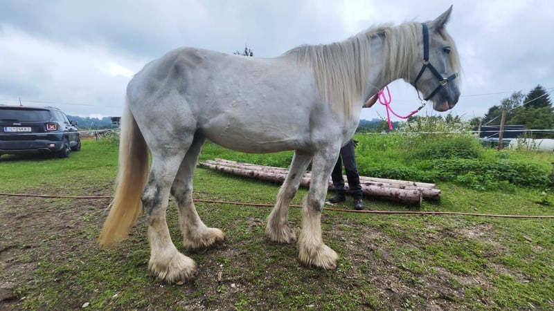 For sale is an impressive and elegant Shire Horse mare, born in 2021. This charming grey mare combines strength, calmness, and serenity, making her perfect for anyone seeking a friendly, reliable, and loyal horse for leisure and recreation. 🐴 Features: Breed: Shire Horse Gender: Mare Year of Birth: 2021 Color: Grey Intended Use: Leisure Price: €5,900 (reduced from €8,800) – for the right person, €4,900 This mare impresses with her gentle nature, balanced demeanor, and striking appearance. She is attentive, people-oriented, and brings a lot of calmness to everyday life – ideal for relaxed rides, walks, or simply spending quality time on the ground. Due to an unusual movement pattern in her walk, which does not occur in trot or canter and currently causes no restrictions, she is offered at a significantly reduced price. With proper handling and care, she can still become a wonderful leisure horse and loyal companion. She is well-maintained, well-behaved, curious, and friendly towards people. She is familiar with the vet, farrier, and trailer loading, and handles everything patiently and with trust. This exceptional mare is the perfect horse for someone looking not just for a riding partner, but for a true companion – a horse with character, serenity, and presence that inspires. 📍 Viewing and trial riding are available by appointment at any time. If interested or for further information and pictures, please contact us.
