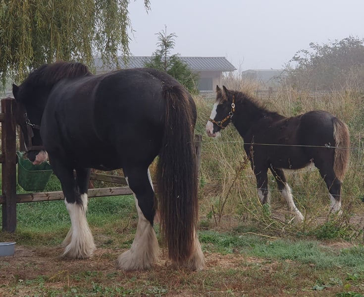 Bartelshoeve Eros est un adorable, joueur et sociable poulain de trait Shire. Il grandit avec d’autres chevaux et est habitué à la vie en extérieur comme en intérieur. Il possède une belle robe noire avec 3,5 membres blancs et une tache en forme de masque très expressive. Eros est vacciné, déparasité et a reçu les soins de son maréchal-ferrant. Il descend d’Earl Stables Casanova x Bartelshoeve Jolien, une lignée pure et élégante, ce qui le rend également intéressant pour la reproduction future. Il possède un passeport Shire enregistré auprès du stud-book mère au Royaume-Uni. Nous recherchons pour ce tendre compagnon une place définitive, sérieuse et pleine d’amour. Si vous êtes vraiment intéressé, vous pouvez contacter Liselot Deurloo par email à avanvossen77@gmail.com ou via WhatsApp au 06-42081233.