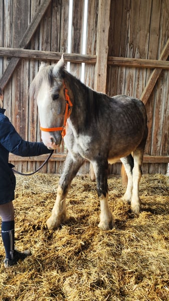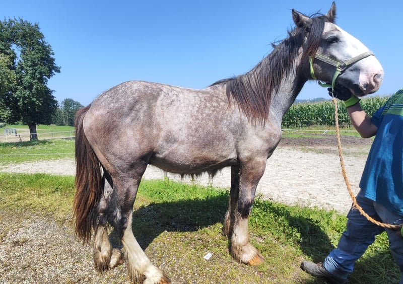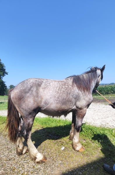 Impressive Shire Horse Stallion for Sale – a true highlight for horse enthusiasts! Born in 2024, this majestic grey Shire stallion impresses with his commanding stature and friendly demeanor. As a classic Shire, he is an excellent companion for leisure riding and outdoor activities, offering exceptional presence and strength. The stallion is healthy, well-groomed, and ideally suited for those seeking a reliable, characterful leisure horse. Please feel free to contact me for more information or if you are interested. Viewings and trial rides are available by appointment.