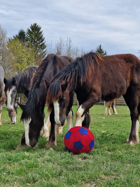 Merci beaucoup pour l'intérêt que vous portez à notre étalon Shire Horse, Fraggle. Shire Horse Fraggle est né en été 2024 et c'est un magnifique jeune homme. Il restera de couleur foncée. Sa mère Grace mesure 1,85 m, son père Duke atteint 1,94 m. Par conséquent, il est fort probable que Fraggle soit également un représentant de grande taille de sa race. En raison des papiers complets de ses deux parents auprès de la English Shire Horse Society, un usage futur comme étalon de reproduction est également envisageable (des examens de sélection doivent être passés). Fraggle provient de notre propre élevage et est donc sous notre garde depuis la première seconde. Fraggle se distingue particulièrement par son apparence adorable. Au début, il est sceptique envers les nouvelles personnes. Une fois qu'il a établi sa confiance, il apprécie les caresses et les séances de pansage. Il est habitué au licol et connaît toutes les "activités standard" d'un jeune cheval (aire de pansage, soins des sabots, brossage, etc.). Actuellement, il n'apprécie pas particulièrement les soins des sabots, cela dépend beaucoup de son humeur du jour. Nous avons également déjà effectué les premières "promenades en van" avec lui, en lui présentant le "monstre de transport" comme une boîte à nourriture mobile sans stress. Fraggle a grandi avec ses congénères dans un troupeau mixte sur nos vastes pâturages, ce qui, à notre avis, est particulièrement important pour la santé et l'équilibre de nos chevaux. Actuellement, Fraggle vit avec ses compagnons de jeu dans un abri ouvert. Nous souhaitons pour lui un nouveau foyer avec beaucoup de compagnie équine. Fraggle est actuellement plutôt de rang inférieur et très facile à manipuler avec d'autres chevaux, quel que soit l'âge de ses compagnons. Bien sûr, il est identifié par puce, vacciné et régulièrement vermifugé. Si vous recherchez un magnifique jeune Shire Horse que vous souhaitez accompagner affectueusement en tant que partenaire, n'hésitez pas à nous contacter. Nos animaux ne sont confiés qu'à de bonnes mains et à un foyer adapté à leur âge, c'est pourquoi il est important pour nous de prendre suffisamment de temps pour les personnes intéressées. Il est également important que le cheval participe à la décision - car la chimie doit également être bonne pour nos animaux. Fraggle vit près de Bad Füssing - nous serons ravis de vous envoyer l'adresse exacte lors de la prise de rendez-vous. Nous proposons également à partir de l'automne des balades guidées et des randonnées avec nos doux géants dans une nature magnifique. Les cavaliers moins expérimentés sont également les bienvenus, dans ce cas, le cheval sera guidé depuis le sol. Des bons cadeaux sont également disponibles chez nous et ont déjà offert de belles surprises (d'anniversaire). D'autres impressions de nos chevaux peuvent également être trouvées sur notre canal Whatsapp. Si vous êtes intéressé, nous serons heureux de vous envoyer le lien. En plus de Fraggle, nous proposons d'autres chevaux à vendre, n'hésitez pas à nous contacter à ce sujet. Il est important de privilégier l'espace au prix. Nous serions donc très heureux de recevoir une brève description du nouveau foyer. Nous attendons votre message avec impatience.