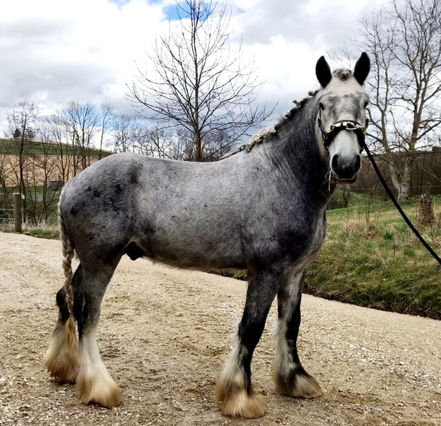 Unique Opportunity: Our stunningly beautiful, well-mannered, and lifetime-approved breeding stallion Primus, registered with the English Shire Horse Society, is seeking a new home. Currently, he stands at 1.85 meters and is expected to grow further. He was raised in an open stable environment with other horses (stallions and geldings) of varying ages until the start of his training. In 2024, Primus was approved for the second time as a breeding stallion, securing his lifetime status. He impressed especially with his appearance—embodying the "sporty type" of Shire Horse, making him well-suited as a riding horse. He is also certainly conceivable for work in harness. Primus is well-behaved and good-natured for a stallion, but experience with stallions is absolutely necessary, even for a gentle one like him. As a riding horse, he is still at the beginning of his training due to his age. With proper encouragement, there is definitely potential for development. He is ridden in all three gaits and shows motivation and willingness to move. Currently, Primus is barefoot and manages well. Traveling by trailer is also not an issue. We only place our animals in the best hands and age-appropriate homes, which is why we take ample time for potential buyers. It is also important to us that the horse has a say in the decision, as the chemistry must be right for our animals as well. We would be delighted to arrange an informal meeting with Primus as a "Shire Horse Day or Weekend," allowing for a relaxed and stress-free introduction. Primus resides near Bad Füssing. Accommodation with excellent dining options is within walking distance of our farm. Several beautiful thermal spas are also nearby, making a short vacation in our area worthwhile. Non-riders are also warmly welcome. We also offer guided rides and hikes with our gentle giants in beautiful nature. Less experienced riders are welcome to join, and in such cases, the horse will be led from the ground. Gift vouchers for these activities are available and have made for delightful (birthday) surprises. Further impressions of our horses can be found on our WhatsApp channel. If interested, we are happy to send the link. We look forward to your message.