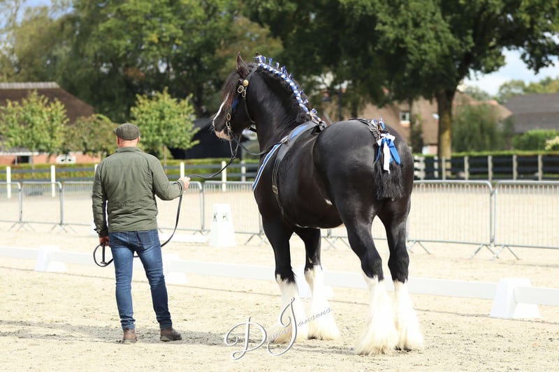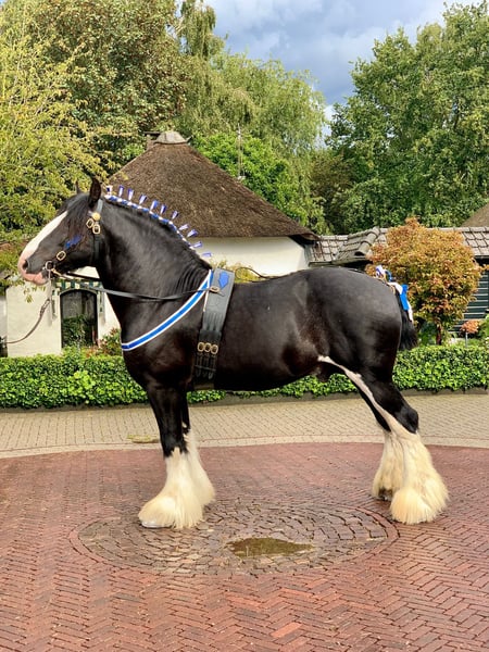 7-year-old jet-black stallion approved for life Height: 180 cm, very well-behaved horse, handles well in the herd and on the lead. Passes on excellent genetics to his offspring. Only for sale because I want to keep some of his foals and have space for just one stallion. !!!!Blackbrook Duncan!!!!! S. Old Stockley George M. Rhs Drew Dam: Acle Kings Leggend