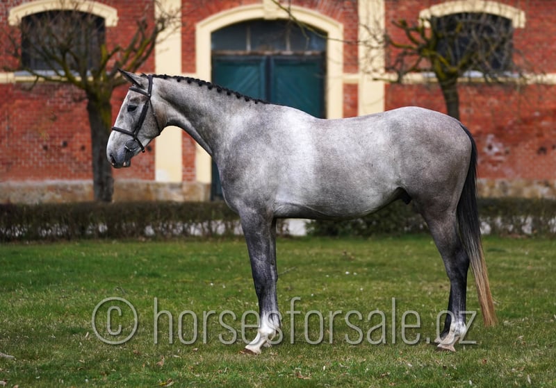 DAMON - outstanding youngster for show jumping or quitation ring Amazing young jumper with plenty of scope and outstanding jump, perfect pedigree. Damon comes directly from breeder’s hand, he has been started under saddle and makes first small jumps with a rider right now. In freejumping he shows nice brain, willingness and quality. Very interesting for the future. Current x-rays available. Price: 23.000€ https://youtu.be/O_ISy0VwVuU https://youtu.be/jS4ZlHvAaD0 new video from first training out of home: https://youtu.be/enj6ELX0lIU Born: 2022, height: 170cm, pedigree: Dakar VDL (Cardento) x Zirocco Blue VDL Location: 39701 Pisek, Czech republic. Central Europe. Transport can be provided. *** more horses on my website www.horsesforsale.cz ***
