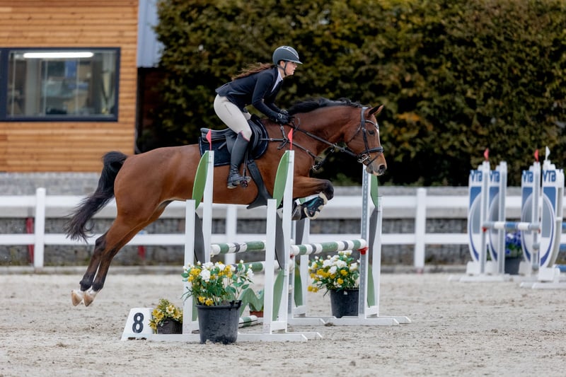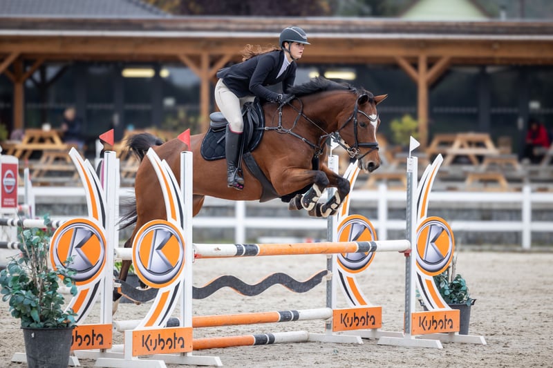 --------------------------------------------------------- An absolute sweetheart to handle — perfect manners with farrier, vet, clipping and transport, easy enough for children to take care of. Safe to hack out with beginners, but a forward, sporty type for an experienced rider in the arena. Competing up to 1.10m national shows, schooling higher at home. Consistent and competitive, regularly placed and often in the ribbons. Not spooky, very honest to the fences, wants to jump clear and gives her best every time. Lovely technique over jumps. Well maintained – regular shoeing (front), deworming, vaccinations, physio and dentist up to date. Turned out daily in a herd of mares. No health issues, X-rays available for inspection.