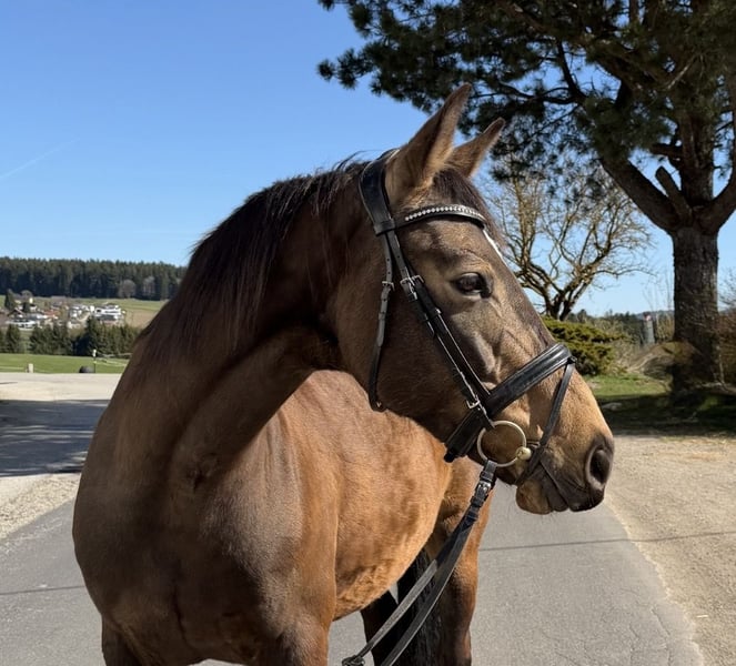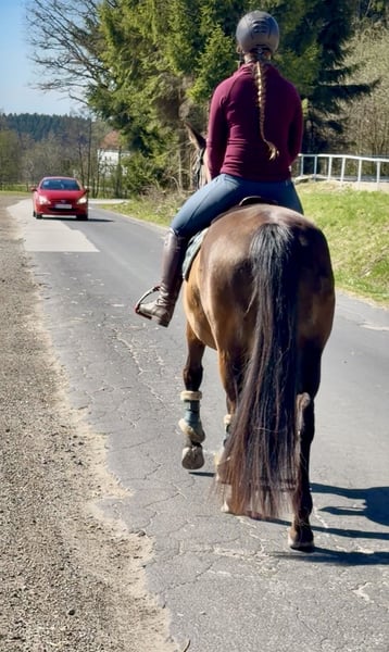 Kasio ist eine acht jährige hübsche Stute in der besonderem Farbe bukskin. Im Sommer schillert das Fell golden und bildet einen schönen Kontrast zum schwarzen Deckhaar. Das 158 cm große Pferd kennt Bodenarbeit genauso wie das reiten am Platz oder im Gelände. Im Umgang ist Kasio sehr ruhig und entspannt und auch beim reiten zählt die Stute eher zu dem Ruhigeren. Kasio läuft barhuf, ist geimpft, entwurmt und gesund! Weitere Infos und Videos gerne per WhatsApp oder telefonisch unter: 00436603632373 Standort: Pelmberg 15/ OÖ Besichtigung und Probereiten gerne nach Terminvereinbarung! Der Transport des Pferdes kann gerne übernommen werden