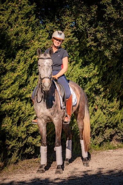 After years of dedicated breeding, carefully combining my two favorite breeds—the Lusitano and the Swedish Warmblood—I am now reducing my number of horses due to pregnancy. This elegant 4-year-old mare represents the ideal blend: the Lusitano’s natural ability for collection paired with the Warmblood’s elasticity, suppleness, and expressive movement. She has been under saddle since autumn 2025 and is a pleasure to work with. She shows excellent rideability, a kind temperament, and clear potential for the dressage arena. Currently standing at 161 cm, she is still developing and expected to grow further. Sire: Figura de Lyw (Guiso – Alecrim) An approved Lusitano stallion scoring 76 points, trained to Grand Prix dressage and advanced Working Equitation. He is known for his outstanding temperament, work ethic, and modern, athletic type with elasticity and impulsion. Height: 166 cm. 🎥 Dressage: https://youtu.be/nnl_OYSswoo?is=mitrGag8-4wL07yB 🎥 Working Equitation: https://youtu.be/osa0lsKNYVc?is=oibQsM7d6DOAJVIP Dam: Erbiza (34) (Faustinus – Briar) A Swedish Warmblood mare with a strong pedigree. Trained to Medium level dressage and now focused on breeding. She combines sensitivity with the capacity for advanced movements, making her a highly enjoyable ride. Height: 174 cm. The mare, her two full sisters, and both parents can be seen in Portugal at MK Equestrian Arts. We offer accommodation and are happy to assist you in finding your perfect horse. You are warmly welcome to visit!