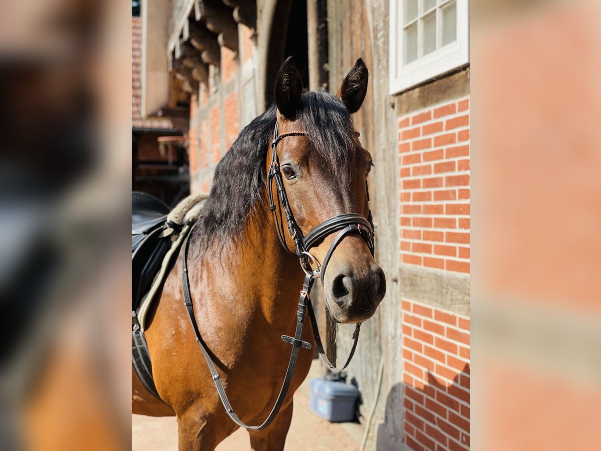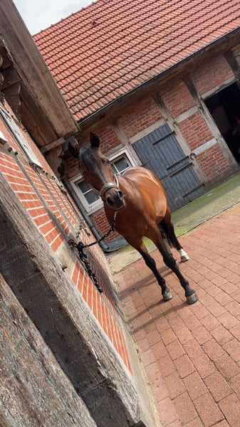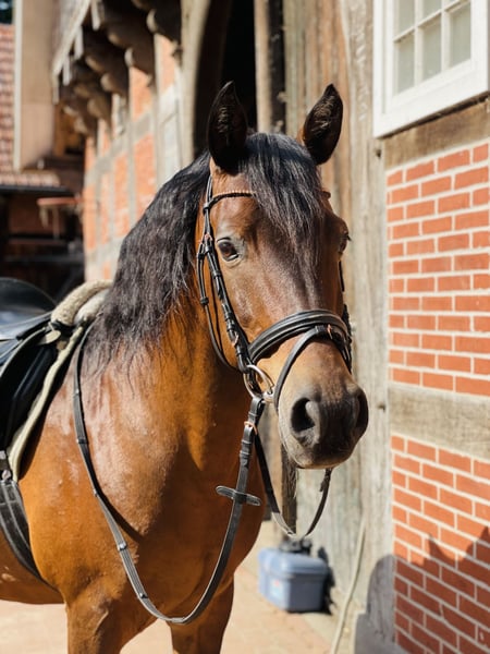 Schweren Herzens verkaufe ich mein Endmaßpony Macho. Er hat ein Stockmaß von ca. 1,48 m, 13 Jahre alt und besitzt natürlich einen Pass mit spanischer Abstammung. Er wird regelmäßig geimpft und die Zähne sind frisch gemacht. Medizinisch ist er top: noch nie krank gewesen und hat nie gelahmt. Im Gelände eignet er sich sowohl allein als auch in der Gruppe. Auf Schützenfesten macht er ebenfalls eine gute Figur. In der Dressur zeigt Macho viel Potenzial. Im Freispringen und in der Bodenarbeit hat er ebenfalls Erfahrungen gemacht. Er braucht ein abwechslungsreiches Training. Turniererfahrung hat er bei mir nicht gemacht, deshalb wird er als reines Freizeitpony verkauft. Durch sein spanisches Blut kann Macho sehr temperamentvoll sein, damit sollte man umgehen können. In der Haltung ist er sehr unkompliziert: Er steht nachts in der Box und darf tagsüber auf die Weide, wodurch er sehr robust ist. Beim Reiten ist Macho sehr fein & auch mal unruhig, daher eignet er sich nicht als Anfängerpony oder für einen Reitverein. Er ist grundsätzlich lieb im Umgang, aber äußerst sensibel und manchmal schreckhaft. Er braucht etwas Zeit, um Vertrauen zum Reiter aufzubauen. Ansonsten ist er ein freundliches und liebenswertes Pony, das klare, ruhige Führung benötigt. Ein Probereiten für 15€ ist möglich, was beim Kauf verrechnet wird. Standort: Menslage Bei ernsthaften Interesse gerne bei mir melden, dort könne wir weitere Details besprechen.