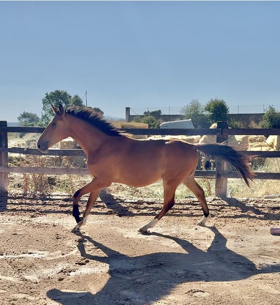 Castrado, castaño, muy tocado y muy buen carácter. La madre ha corrido hasta 1,35, Muy amateur. Padre ha corrido hasta 1,30 con 6 años.