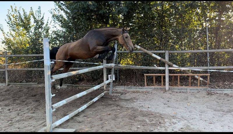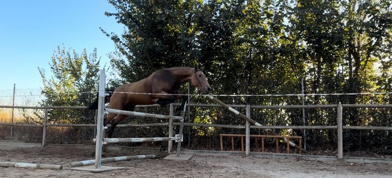 Se vende potro CDE de una nueva yeguada , nuestras yeguada de nombre valdevidal de gran calidad y excelentes orígenes, ideal para salto o deporte. • Padre: Centauer Z x Darco 🏅 • Madre: Luso-Árabe, aportando nobleza, resistencia y movimiento. • Altura actual: 1,62 m • Capa: Bayo dorado, muy llamativo y elegante. • Manejo: Acostumbrado a la cuadra, dócil y fácil en el trato. • Trabajo: Saltando en libertad con muy buena técnica, equilibrio y potencia. Potro con una morfología armónica, carácter excepcional y aptitudes deportivas prometedoras. Ideal para quien busque un futuro caballo de salto o completo con genética contrastada.