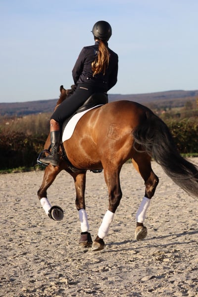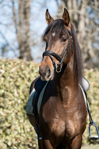 Hongre pur race espagnol Il pirouette, appuie, passage, piaff et en apprentissage des changements de pied. Il est sorti en concours sur amateur 3 et 2. Cheval avec un grand cœur et très généreux. Il est très bien mis aux trois allures. Bien avancé dans le travail sur le plat ( cession, épaule en dedans, transition pas/galop, galop/pas, début du pas espagnol)