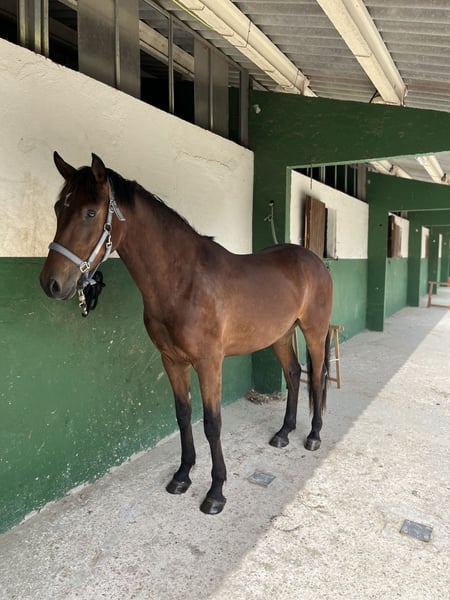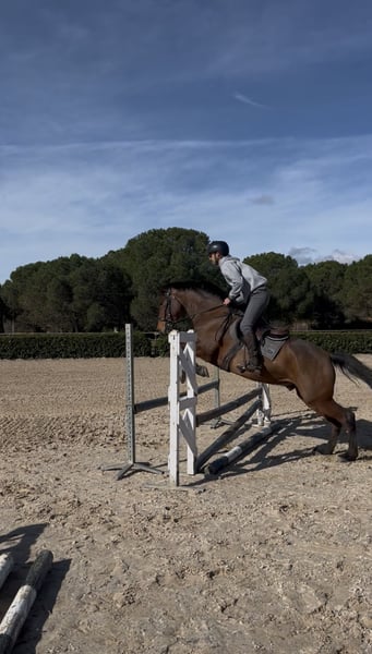 Chance to acquire a beautiful Spanish sport horse! This gelding was foaled in 2021, is chestnut in color, and stands approximately 15.6 hh. He is ideal for those seeking a horse with potential in show jumping and competitive riding. This horse combines beauty, character, and talent, making him an excellent choice for riders who want to progress in the world of equestrian sport. He is still somewhat hesitant when jumping, as he is just starting out in this discipline, but he has a lot of heart and learns very quickly. For more information and details, please do not hesitate to contact us.
