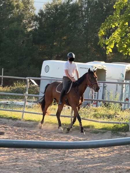 Na sprzedaż koń CDE, mający 4 lata, z dużym potencjałem skokowym. Bardzo łagodny, wysoki na 1,79 m w kłębie, ale pełen energii i siły. Koń jest już odstawiony od matki i jeździ pod siodłem. Wysyłamy filmy z pokazami skoków na lonży. Rozważyłoby się wymianę na doskocząćkę z dobrym pochodzeniem skokowym.