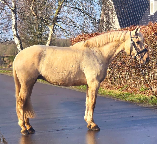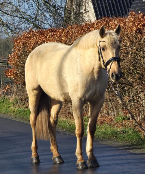 ✨ Beautiful 12-year-old Palomino mare – Spanish beauty – approx. 1.63 m ✨ For sale: a stunning 12-year-old Palomino mare of Spanish origin, with an approximate height of 1.63 m 🐴💛 This mare is a real eye-catcher with her golden coat and wonderful temperament ✨ She is very gentle and enjoys attention 🤍 She is calm and cooperative during grooming, tacking up, and caring for her 🧽🪮 Under saddle, she is pleasant to ride and reliable 🏇 She is well-behaved on solo rides and remains calm and relaxed in the outdoors 🌳🌾 Perfect for someone who enjoys riding independently 😊 Additionally, she is: ✔ Calm at the blacksmith 🔨 ✔ Well-behaved in the trailer 🚛 ✔ Honest and eager to work 💪 In short: a sweet, dependable mare suitable for someone looking for a lovely recreational partner with presence and a golden character 🌟🐎 For more information or serious inquiries, please send a message 📩😊