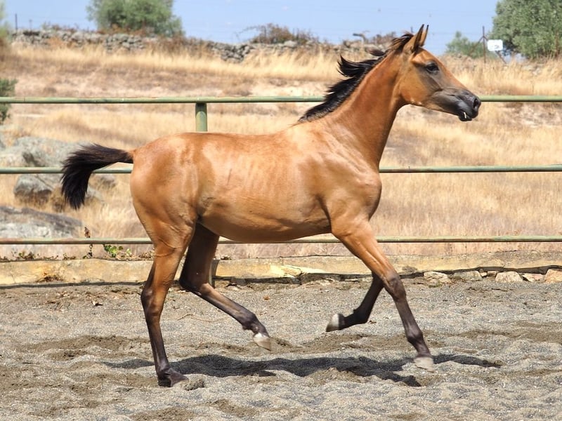 Condividiamo con voi questa elegante puledra di pelle di daino, figlia di una cavalla KWPN, figlia di Vivaldi, un cavallo di livello internazionale e con un gran numero di discendenti registrati, e di un cavallo spagnolo Perlino Voraz Ac con un fisico barocco e buoni movimenti. Con un carattere eccellente, è una puledra affettuosa e ama il contatto umano. Avete davanti a voi un'eccellente opportunità di acquisire questa interessante puledra che, per la sua bellezza, il carattere, la taglia e il colore, sarà una cavalla con un futuro per qualsiasi appassionato amatoriale.