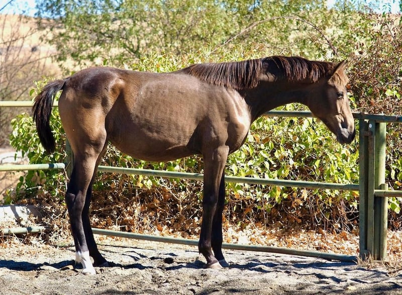 Esta excepcional potra baya, resultado de una mezcla única entre una madre KWPN de 1.80 m de alzada y un semental Perla español PRE de 1.69 m, destaca por sus extraordinarios movimientos y su elegante morfología. Con una estructura física impecable, presenta excelentes aplomos y cascos, lo que la convierte en una opción ideal tanto para la doma como para otras disciplinas. Su genética combina lo mejor de dos mundos: la potencia y la altura de los KWPN con la nobleza y el carácter del PRE, asegurando un futuro prometedor para quienes busquen una potra con gran proyección y calidad.