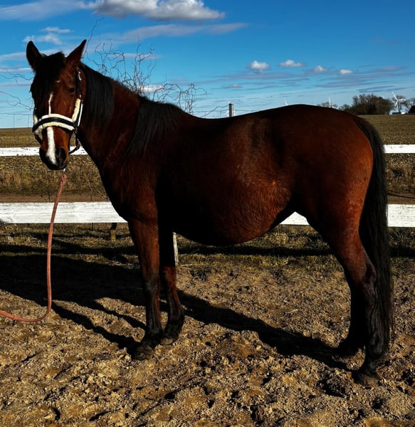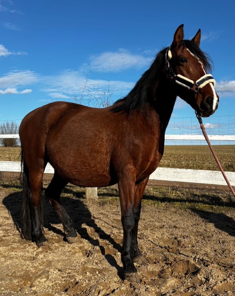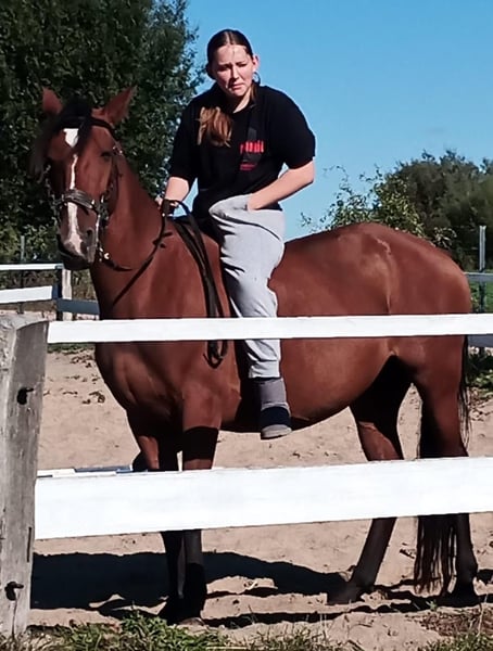 Traumhafte spanische Stute – tragend & mit großem Potenzial Zum Verkauf steht eine wunderschöne spanische Stute. Sie ist fast 7 Jahre alt, ca. 1,55 m groß und eine braune Stute mit Temperament. Die Stute ist angeritten und wurde bereits im Gelände geritten – sogar von meiner 13-jährigen Tochter. In der Bodenarbeit ist sie sehr fein, sensibel und aufmerksam. Sie reagiert ehrlich auf ihren Menschen und überzeugt durch ihre sehr feinfühlige Art. Beim Schrecktraining zeigt sie sich absolut kooperativ und macht alles brav mit. Zudem besitzt sie sehr schöne, ausdrucksstarke Gänge, die ihr auch für eine weitere Ausbildung viel Potenzial geben. Ein echtes Highlight: Sie ist hochtragend von einem Volltiger – der Geburtstermin ist Mitte April. Auch ihre fast zweijährige Tochter kann gerne besichtigt werden. Diese Stute ist das perfekte Pferd für jemanden, der Freude daran hat, ein sensibles, ehrliches Pferd weiter auszubilden und sich gleichzeitig auf ein ganz besonderes Überraschungspaket freut – nämlich sein eigenes Fohlen von Geburt an aufwachsen zu sehen. Sie sucht einen Menschen der ebenso feinfühlig ist wie sie und viel Pferdeverstand mitbringt. Nichts für Anfänger sondern Menschen die mit ihr zusammen wachsen wollen. Ein tolles Pferd für Menschen mit Gefühl, Zeit und dem Wunsch nach etwas Besonderem. Das letzte vorletzte Bild zeigt den Deckhengst. Das letzte Bild ist ihre Tochter. Das Video ist am Anfang des Anreitens entstanden. Bei ernsthaftem Interesse bitte ich um einen Anruf. Gern beantworte ich alle weiteren Fragen.