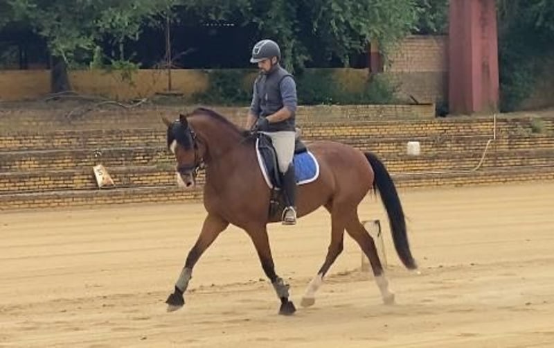🐎 Zu verkaufen – CDE-Stute 2018 (75% KWPN – 25% PRE) Zum Verkauf steht eine CDE-Stute, geboren 2018, mit nachgewiesenen sportlichen Abstammungen (Ferro X Jazz). Sie ist aktuell 7 Jahre alt, befindet sich in voller Form und wird regelmäßig gearbeitet. 🔹 Eigenschaften: Braune Färbung mit einem markanten, schrägen Abzeichen im Gesicht, sehr ausdrucksvoll und charakteristisch. Ausgebildet im Schritt, Trab, Galopp und seitlichen Übungen. Große Präsenz und weite Bewegungen, mit Eignung sowohl für die Dressur als auch für den Freizeitsport. 🔹 Charakter: Nobel, aber *nicht geeignet für unerfahrene Reiter*, jedoch mit großem Potenzial für erfahrene Hände, die ein Projekt mit Qualität und Persönlichkeit suchen. 💰 Richtpreis: 15.000-20.000 € Standort: Carmona, Sevilla, Spanien. 📲 Weitere Informationen, Videos und Besichtigungen sind nach vorheriger Terminvereinbarung verfügbar.