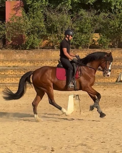 🐎 In vendita – Fattrice CDE 2018 (75% KWPN – 25% PRE) Si offre in vendita fattrice CDE nata nel 2018, con origini sportive consolidate (Ferro X Jazz). Attualmente di 7 anni, è in piena forma e lavora regolarmente. 🔹 Caratteristiche: Pelo baio con un marchio bianco storto, molto espressivo e distintivo. Addestrata al passo, trotto, galoppo ed esercizi laterali. Grande presenza e movimenti ampi, con attitudini sia per il dressage che per l'uso sportivo ricreativo. 🔹 Carattere: Nobile ma *non adatta a cavalieri inesperti*, ma con un grande potenziale per mani esperte che cercano un progetto di qualità e personalità. 💰 Prezzo indicativo: 15.000-20.000 € Posizione: Carmona, Siviglia. Spagna. 📲 Maggiori informazioni, video e visite disponibili su appuntamento.