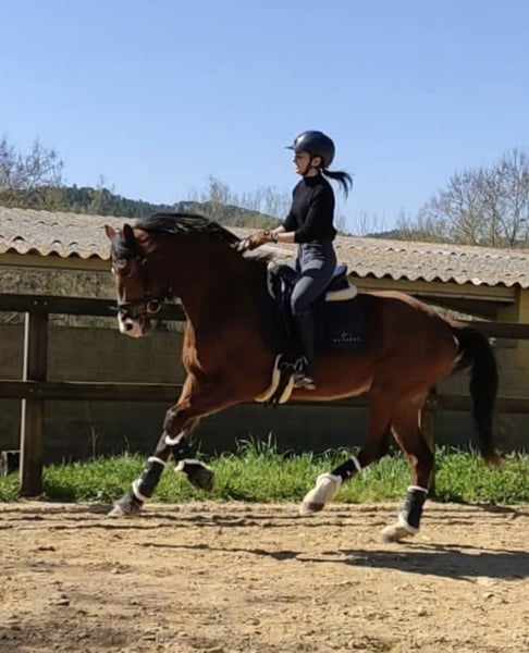 🐎 For sale – CDE Mare 2018 (75% KWPN – 25% PRE) A CDE mare born in 2018 is offered for sale, with proven sport origins (Ferro X Jazz). Currently 7 years old, she is in excellent condition and working regularly. 🔹 Characteristics: Chestnut coat with a twisted white blaze, very expressive and distinctive. Trained in walk, trot, canter, and lateral exercises. Great presence and wide movements, with abilities for both dressage and recreational sports use. 🔹 Character: Noble but *not suitable for inexperienced riders*, but with great potential for experienced hands looking for a project with quality and personality. 💰 Indicative price: €15,000-20,000 Location: Carmona, Sevilla, Spain. 📲 More information, videos, and visits available by appointment.