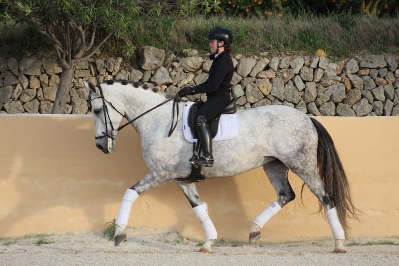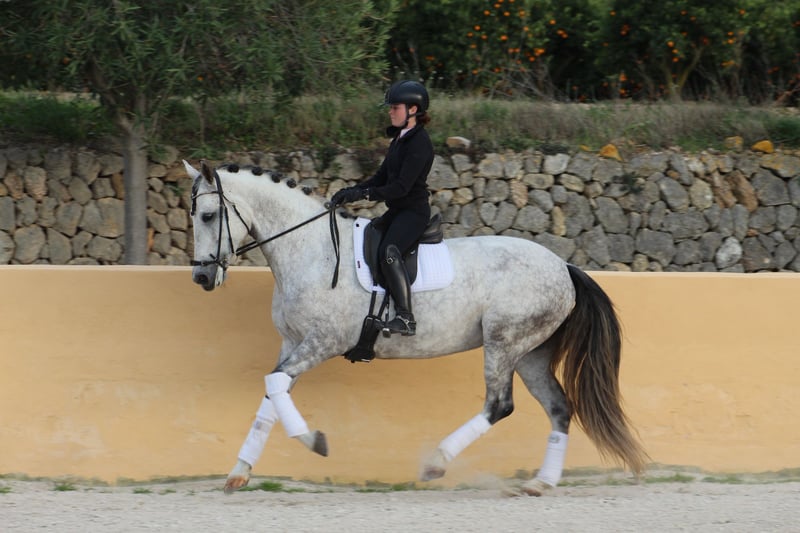 Donna es una yegua con energía y una puesta en mano muy fácil ,cómoda de montar y muy trabajadora. Actualmente está confirmada en nivel 4 y trabajando piruetas al galope y cambios a 4 y 3 trancos (nivel 7 años ) de paseo es totalmente Boomproof le encanta ir al campo de galope ,carga bien al remolque o camión ,buen comportamiento fuera de casa