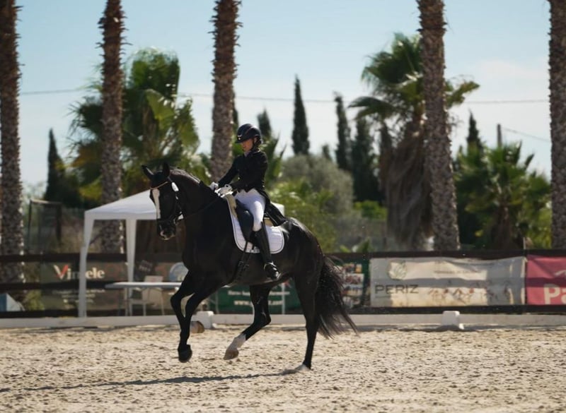 For sale: A magnificent 7-year-old sport mare with top dressage bloodlines and extensive competition experience. She stands at 16.1 hh. Ideal for juniors or adults looking to compete in classical or San Jorge events. She goes well with a snaffle bit or with a double bridle. She is very affectionate and well-behaved, but not suitable for a child due to her age and size. Serious buyers only, those who will give her a good home. Please inquire only if you are truly seeking a horse with these characteristics.