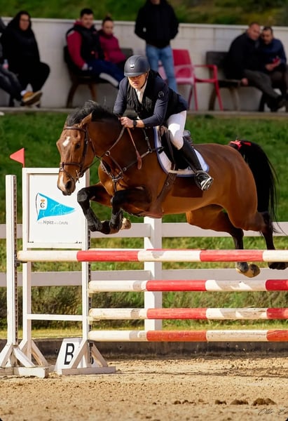 Yegua muy fácil de montar. Muy buena cabeza, siempre al otro lado. Con sangre, pero siempre en positivo. Haciendo con regularidad recorridos y buenos resultados en 1.20 con amateur. Fuerza y cabeza para pruebas superiores. Hermana de caballos haciendo 1.45. La madre corrió 1.45 con amateur. Gran oportunidad. Buena salud y placas de ha e 15 dias. Se vende por dejar de montar.