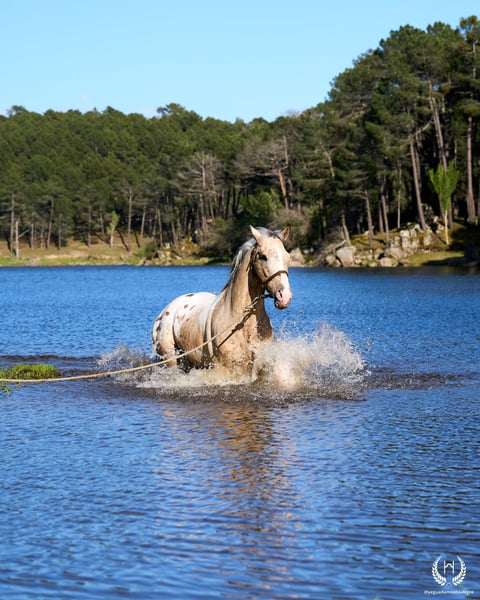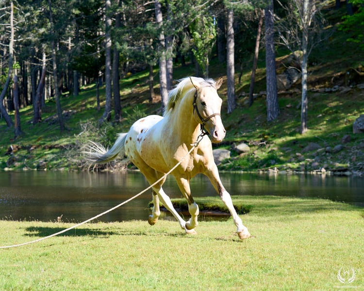 The stallion that created Yeguada Monte Alegre, the cornerstone on which this wonderful project was built… is available! Are you looking for a truly exclusive stallion with unique genetics? Or a special, one-of-a-kind riding horse to enjoy endless rides and the pure pleasure of riding? Born on 2 May 2016 and registered as CDE with ANCADES, GALLO (Spirit CDE) is exactly that special horse. ▫️ Training level GALLO has a very solid basic training, based on the three natural gaits: walk, trot and canter, both in the arena and out in the countryside. ▫️ Beauty – genetics and conformation Outstanding beauty, very harmonious with an Arab-influenced expression. Spectacular, compact and powerful build. His genetics are UNIQUE – there is currently no other horse like him. 🔬 GENETIC COAT: (( gg Aa Ee CRcr TOto LPlp PATN1patn1 nd1nd1 )) He does not produce grey horses. He is a buckskin (bayo) and can produce black, chestnut and bay. His Cream dilution gene allows buckskin, palomino and smoky black; with dilute mares also perlino, cremello and smoky cream. His Tobiano gene produces pinto horses, most commonly with four high white socks and broad facial markings. His LP (Appaloosa) + PATN1 genes produce all types of Appaloosa coats: leopard, semi-leopard and snowcap, with or without spots, always large and oval. He is homozygous for the nd1 gene, therefore producing primitive markings (dorsal stripe and leg barring). ▫️ Absolute versatility GALLO works both as a breeding stallion and as a riding horse. 🌍 National and international transport Once the ideal buyer is found, transport can be arranged through our trusted agencies. 🫴 Contact us if you believe this is the horse you are looking for, and don’t miss the interviews pinned on our profile to get to know GALLO in depth. 📸 @almarevisual