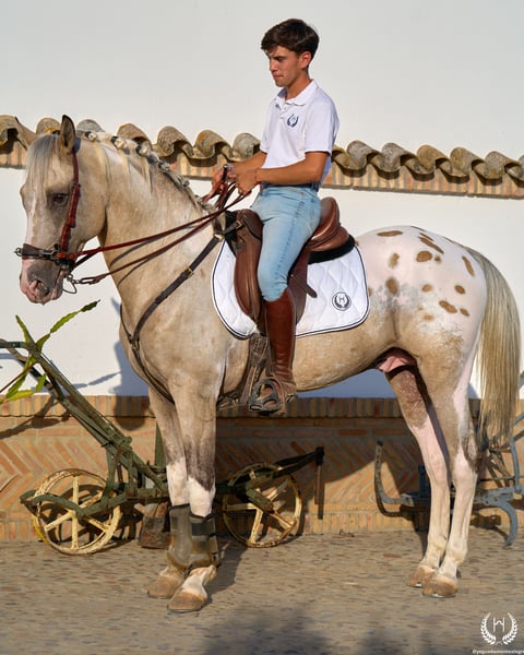 El semental que creó la Yeguada Monte Alegre, piedra angular sobre la cuál se ha construido este maravilloso proyecto.... Está disponible!! ¿Estas buscando un semental exclusivo de verdad, con una genética única? ¿Buscas un caballo de silla especial e irrepetible para disfrutar de paseos eternos y darte el gusto de montar a caballo? Nacido el 2 de mayo de 2016 y registrado como CDE en ANCADES, GALLO ( Spirit CDE ) es ese caballo especial; ▫️ Nivel de Doma GALLO tiene una doma base muy buena, basada en los tres aires natuarles: Paso, trote y galope. Tanto en pista como en el campo. ▫️ Belleza - Genética y Morfología Sobresaliente belleza, muy armoníca con aire arabizado. Físico espectacular , compacto y potente. Su genética es ÚNICA, no existe otro caballo igual actualmente. 🔬CAPA GENÉTICA: (( gg Aa Ee CRcr TOto LPlp PATN1patn1 nd1nd1 )) NO da caballos tordos. Es una caballo BAYO que puede dar ( Negros, Alazanes y Castaños) Su gen de dilución Crema de da la posibilidad de dar ( Bayo, Palomino, Negro cenizo ), con yeguas diluidas puede dar ( Perlino, Cremello, Crema cenizo) Su gen Tobiano da caballos Pios, puede darlos de muchas maneras , mayoritariamente da 4 calzos altos blancos y caretos. Su gen LP ( Appaloosa) + PATN1 da capas Appaloosa de todo tipo: Leopardos, Semileopardos y Grupas Nevadas con y sin lunares, siempre amplios y ovalados. Es homocigoto en el gen nd1 por lo que da manchas primitavas ( Raya de mulo en el dorso y cebraduras en las patas) ▫️ Versatilidad absoluta GALLO es un caballo que sirve tanto de semental como para caballo de silla. 🌍 Envíos Nacionales e Internacionales Una vez se haya encontrado el cliente ideal para el caballo se podrá realizar su envío nacional o internacional, a través de las agencias con las que trabajamos. 🫴 Contáctanos si crees que es el caballo que estás buscando y no te pierdas las entrevistas que están fijadas en el muro de nuestro perfil para que conozcas a Gallo en profundidad. 📸 @almarevisual