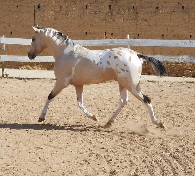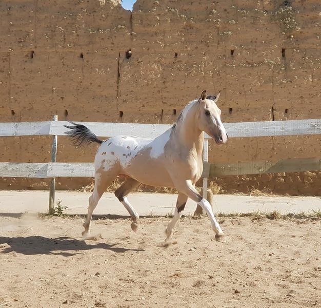 The stallion that created Yeguada Monte Alegre, the cornerstone on which this wonderful project was built… is available! Are you looking for a truly exclusive stallion with unique genetics? Or a special, one-of-a-kind riding horse to enjoy endless rides and the pure pleasure of riding? Born on 2 May 2016 and registered as CDE with ANCADES, GALLO (Spirit CDE) is exactly that special horse. ▫️ Training level GALLO has a very solid basic training, based on the three natural gaits: walk, trot and canter, both in the arena and out in the countryside. ▫️ Beauty – genetics and conformation Outstanding beauty, very harmonious with an Arab-influenced expression. Spectacular, compact and powerful build. His genetics are UNIQUE – there is currently no other horse like him. 🔬 GENETIC COAT: (( gg Aa Ee CRcr TOto LPlp PATN1patn1 nd1nd1 )) He does not produce grey horses. He is a buckskin (bayo) and can produce black, chestnut and bay. His Cream dilution gene allows buckskin, palomino and smoky black; with dilute mares also perlino, cremello and smoky cream. His Tobiano gene produces pinto horses, most commonly with four high white socks and broad facial markings. His LP (Appaloosa) + PATN1 genes produce all types of Appaloosa coats: leopard, semi-leopard and snowcap, with or without spots, always large and oval. He is homozygous for the nd1 gene, therefore producing primitive markings (dorsal stripe and leg barring). ▫️ Absolute versatility GALLO works both as a breeding stallion and as a riding horse. 🌍 National and international transport Once the ideal buyer is found, transport can be arranged through our trusted agencies. 🫴 Contact us if you believe this is the horse you are looking for, and don’t miss the interviews pinned on our profile to get to know GALLO in depth. 📸 @almarevisual
