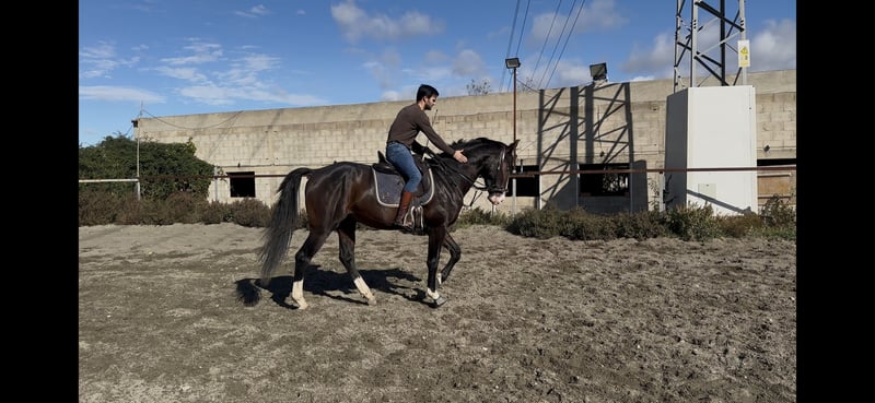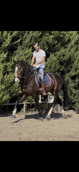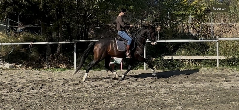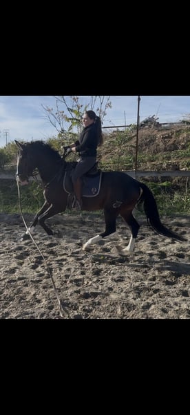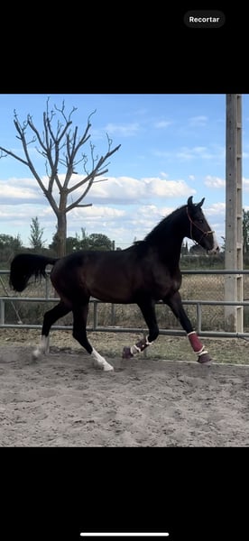 For sale: a young horse with an excellent temperament, very gentle, easy to handle, and cooperative. Started under saddle, worked freely on the lunge line, with no fears or vices. Has never shown any issues during desensitization or daily handling. Very respectful and comfortable to work with. Beginning to go out alone or with other horses in the field. 🔹 Age: 3 years and 8 months 🔹 Coat: dark bay 🔹 Distinctive features: blaze, roan, and blue eye 🔹 Temperament: calm, noble, and not easily spooked 🔹 Handling: easy in the stable, clean, and well-trained This horse is still growing and is expected to develop significantly further. He comes from a very good pedigree: • Mother: Perla • Father: Black • Grandparents: chestnuts, blacks, albinos, and cremellos • Ancestors with results in dressage, working equitation, show jumping, and carriage driving, both nationally and internationally A very versatile horse, ideal for various sports or recreational disciplines. ✔️ Owned by a single owner since 5 months of age ✔️ Vaccinations and health checks up to date ✔️ Work always appropriate for his age ✔️ Great future potential More information available privately. Videos and photos available for serious inquiries.