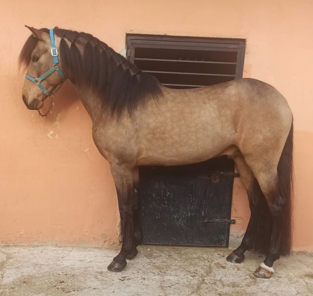 CDE HORSE mit dem Eisen von Lea VICENS. Alleiniger Besitzer seit Fohlen. Exklusives Fell Bayo en Oro. 5 Jahre alt. 1,58 in Wachstum. Registriert als Zuchthengst, aber nicht gedeckt. Eingetragen bei ANCADES. Enkel von Divo PM und dem berühmten FUEGO FG Lusitano Bayo Faivre. Vater RANCHERO AP PRE Peralta. Mutter Maestranza LUSITANA Faivre. Aufgesessen, Schritt, Trab, Galopp, Galopp und Ausführung verschiedener Dressurübungen. Eingeweiht in Cambios und Paso Español. Noble wird von Mädchen auf der Straße, auf dem Weg, auf dem Spaziergang und auf der Strecke geritten. Ideal für Junioren und Amateure. Vet Check und Tests akzeptiert. Dokumentation auf dem neuesten Stand, Revisionen, Mund getan, Impfungen und entwurmt.