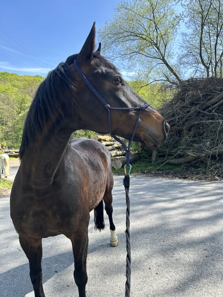 Quincy Delight is a stunning gelding seeking a loving and horse-friendly home. He has a unique character—curious, very affectionate, and friendly with other horses. He has been ridden up to medium level in dressage and at L-level in jumping. He moves beautifully, but he is not suitable for beginners or novice riders. About a year and a half ago, he developed a gastric issue, which has led to only light lunging work and plenty of rest since then. He is now in recovery and, with consistent care, could become a wonderful riding horse again—possibly participating in small competitions without stress. In handling and riding, he can be quite challenging, so he is not suitable for children or young riders. Generally, he is best suited for experienced, strong riders. It would also be beneficial if the rider has some horsemanship experience. He prefers an open stable or a well-ventilated environment, as he has dust sensitivities. Currently, I suspect he might have PSSM2, but this has not yet been confirmed. Overall, he is a fantastic horse that I am only offering for personal reasons and with a heavy heart. Therefore, he will only go to good hands—people with heart and understanding. Price is secondary; priority is finding the right home. Serious inquiries only!